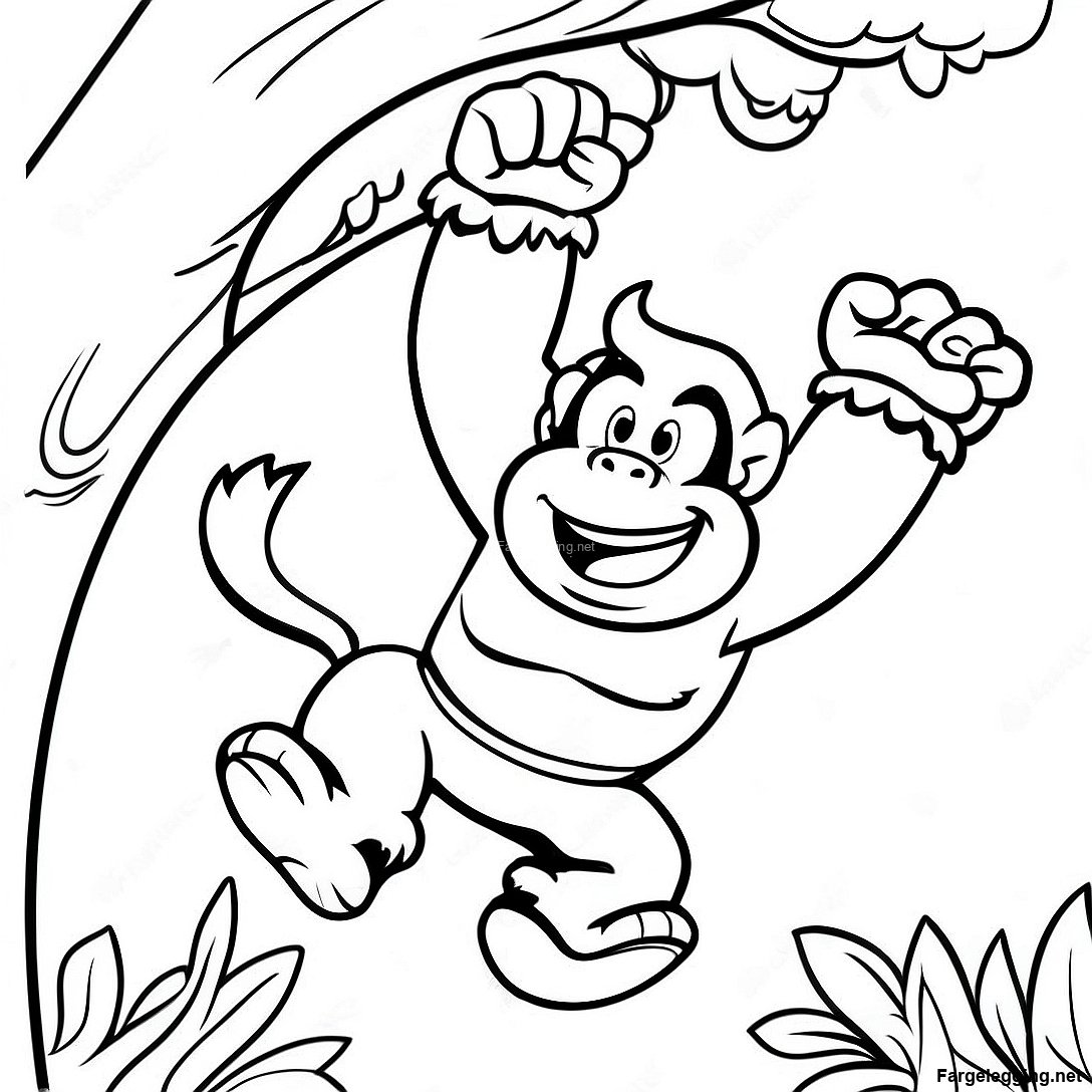 Donkey Kong Svinger Fra Et Tre Fargeleggingsside