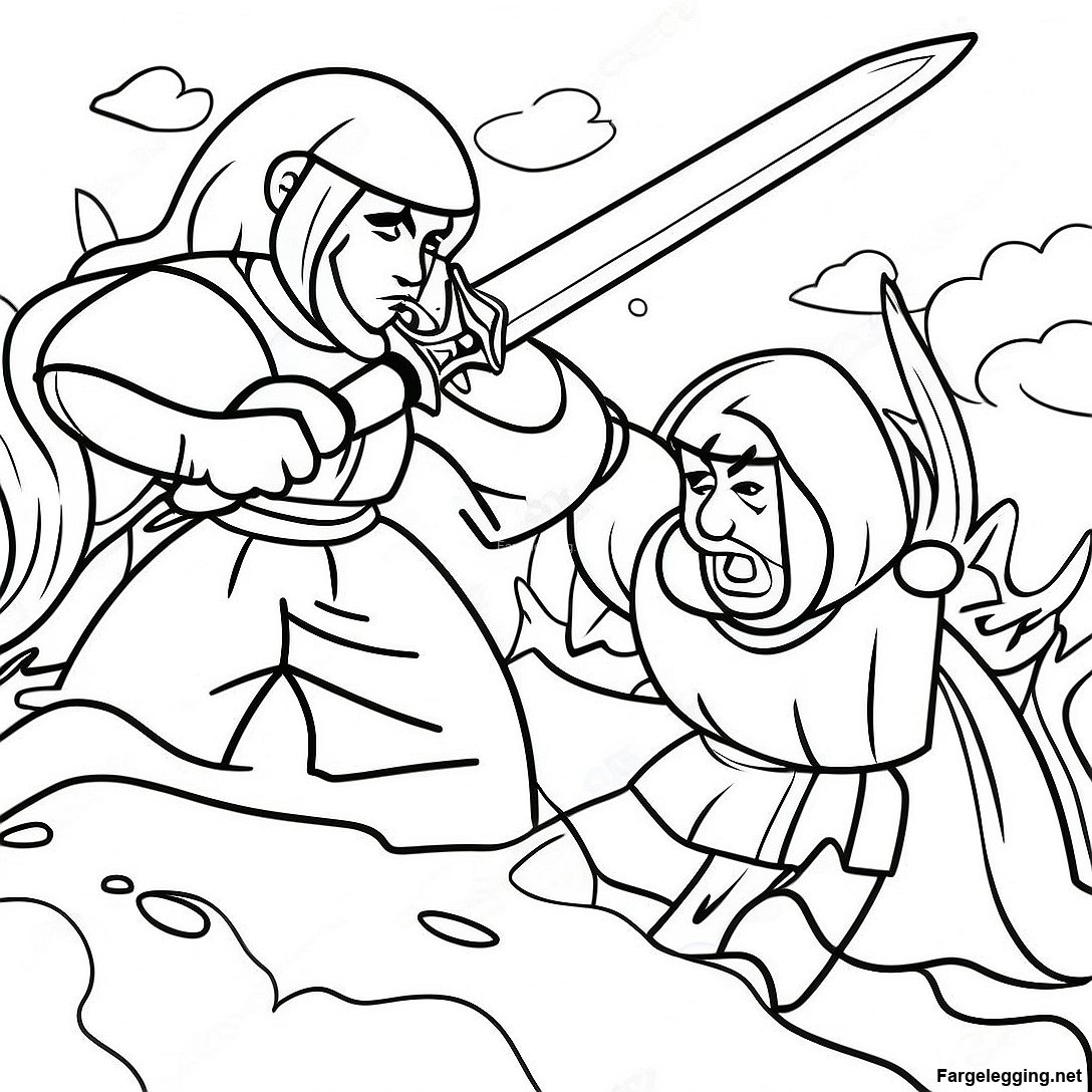 Last ned utskrivbart PDF av Episk Sverdkamp Fargeleggingsside