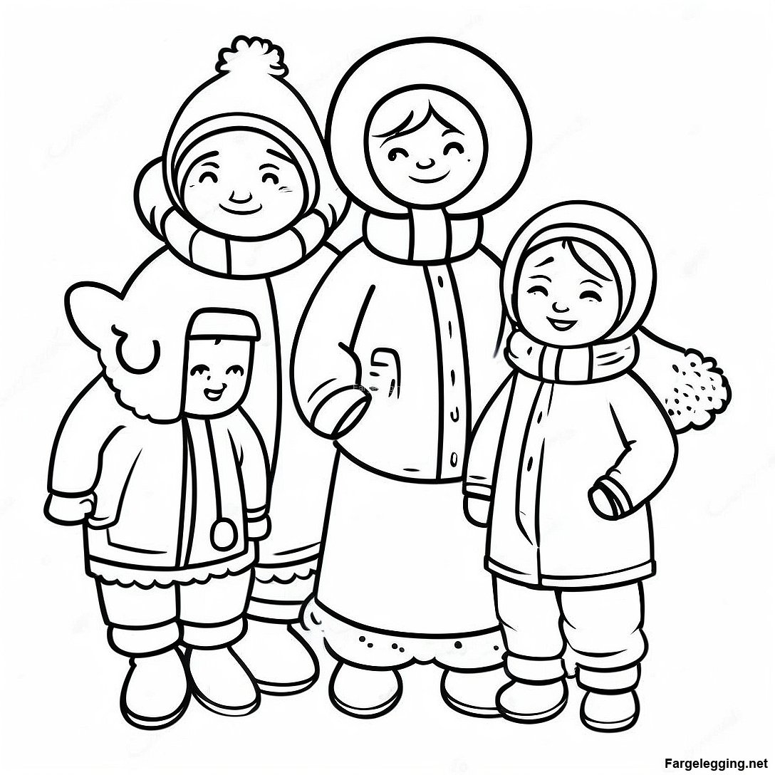 Eskimofamilie I Vinterklaer Fargeleggingsside