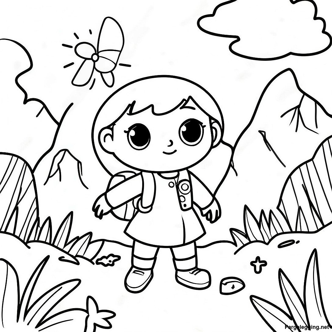 Last ned utskrivbart PDF av Eventyrlig Storesøster Som Utforsker Naturen Fargeleggingsside