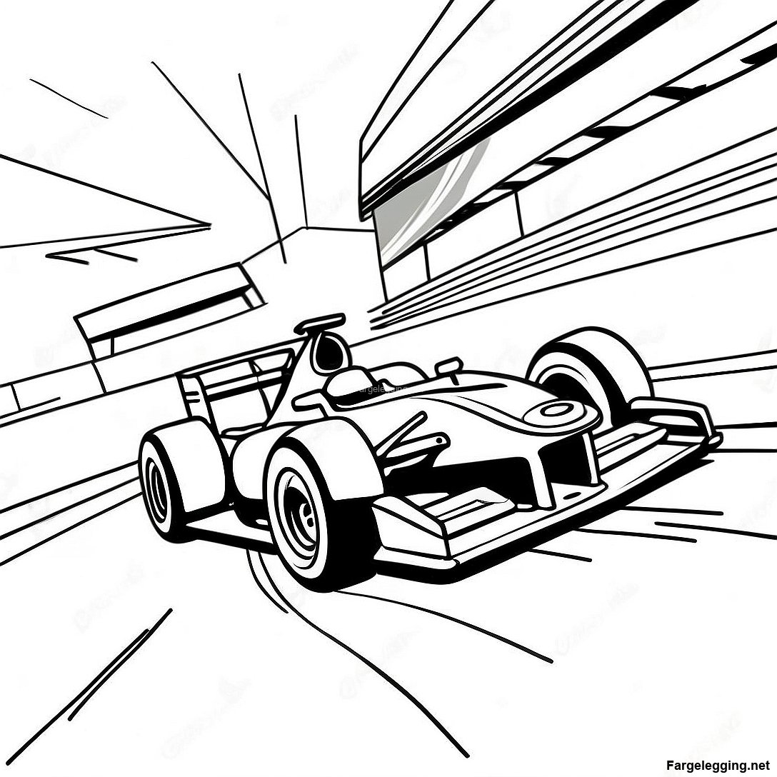 F1 Racerbil Som Kjorer Nedover Banen Fargeleggingsside