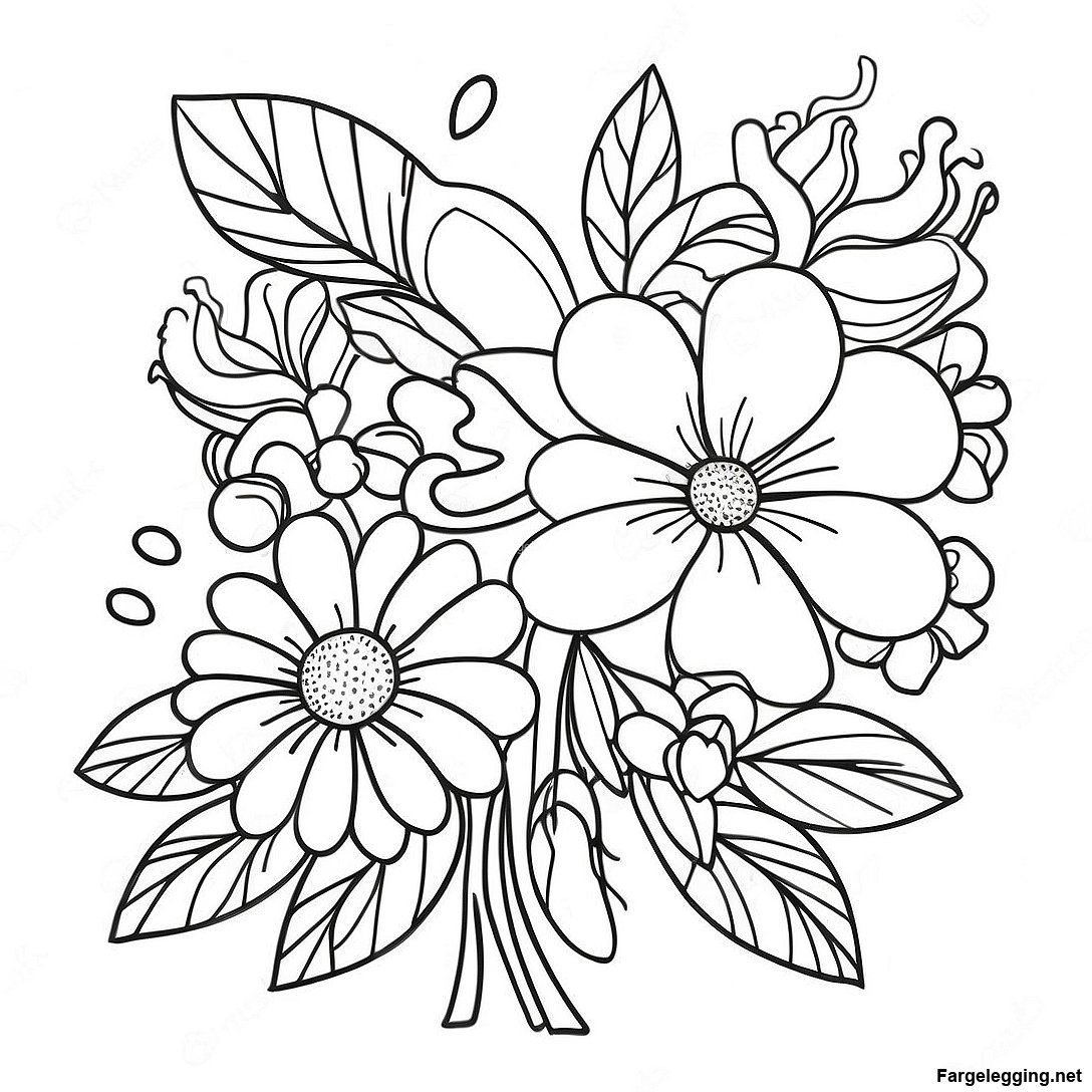 Last ned utskrivbart PDF av Fargerik Blomsterbukett Fargelegging