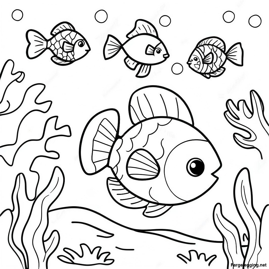Fargerike Fisker Som Svømmer I Korallrevet Fargeleggingsside