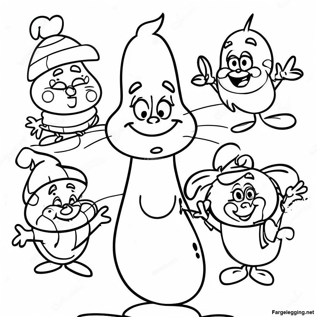 Last ned utskrivbart PDF av Gledelige Whoville-Karakterer Fargeleggingsside