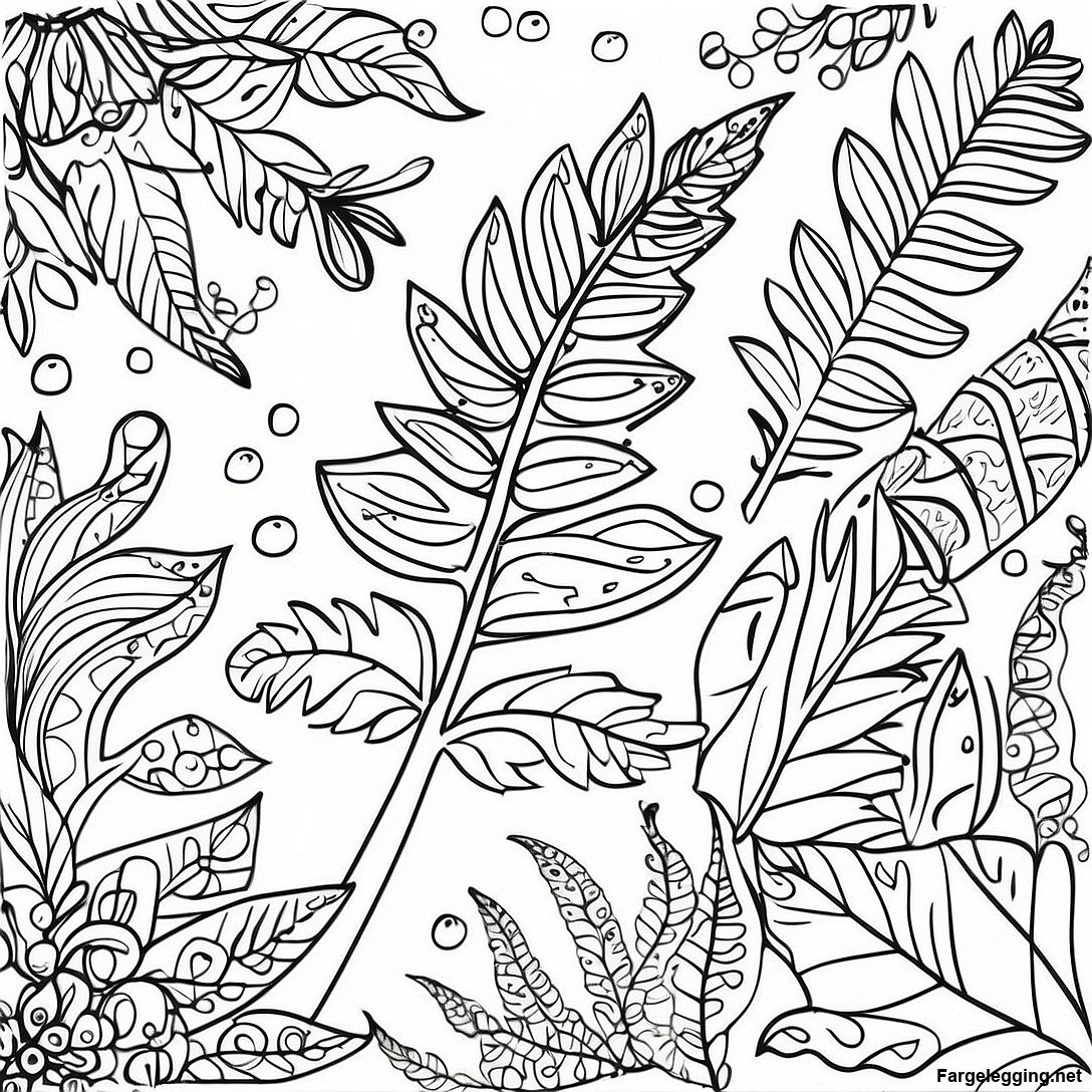 Last ned utskrivbart PDF av Intrikat Bregneblad Fargeleggingsside