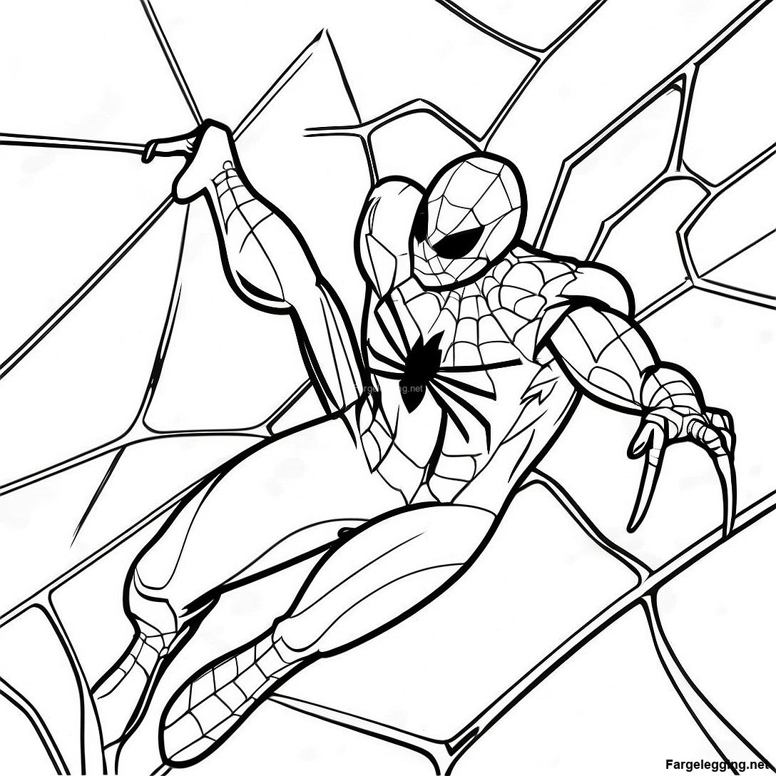 Spider Man i Aksjonsposisjon Fargeleggingsside