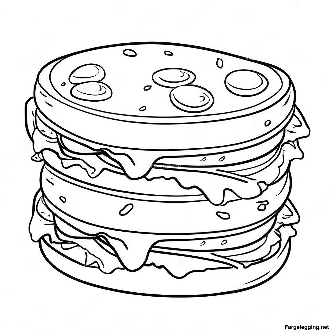 Last ned utskrivbart PDF av Kjempe Sandwich Fargeleggingsside