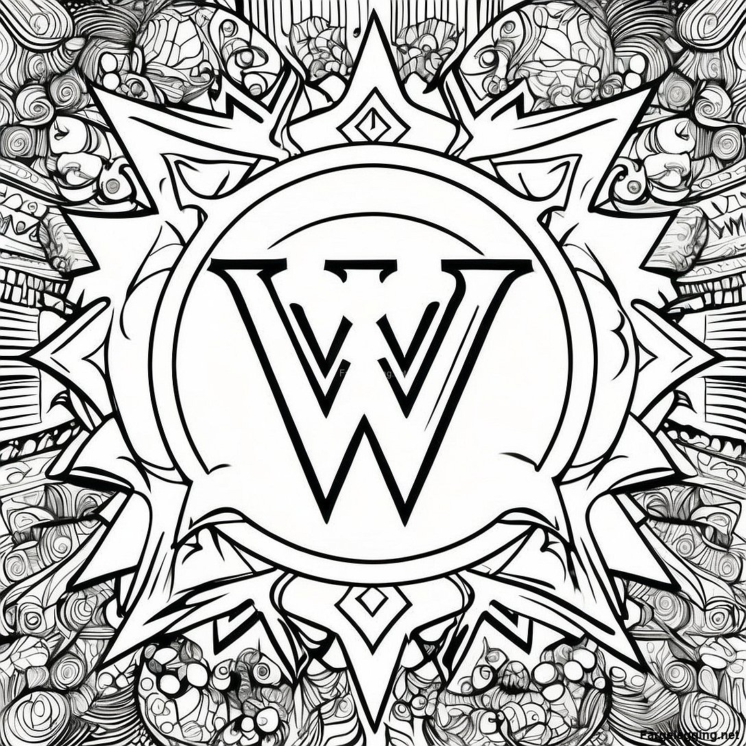 Last ned utskrivbart PDF av Kompleks Gråskala Wwe Logo Fargeleggingsside