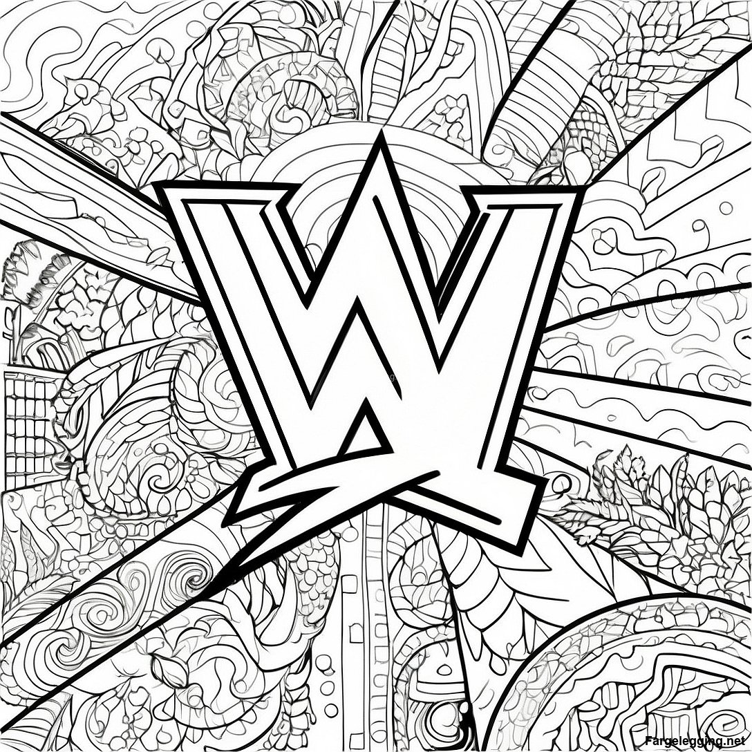 Last ned utskrivbart PDF av Kompleks Gråskala Wwe Logo Fargeleggingsside