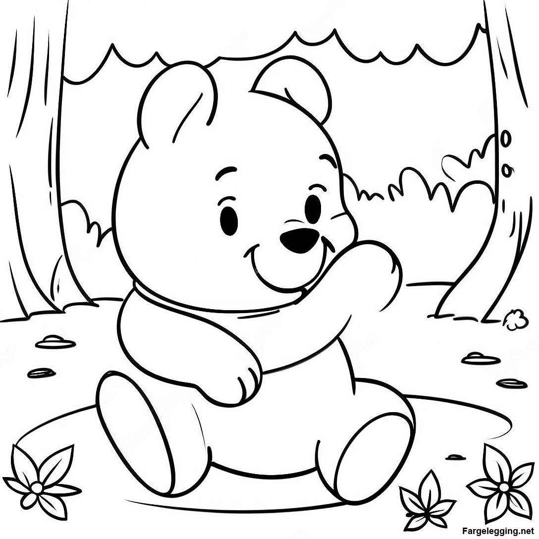 Last ned utskrivbart PDF av Lekende Baby Ole Brumm I Skogen Fargeleggingsside