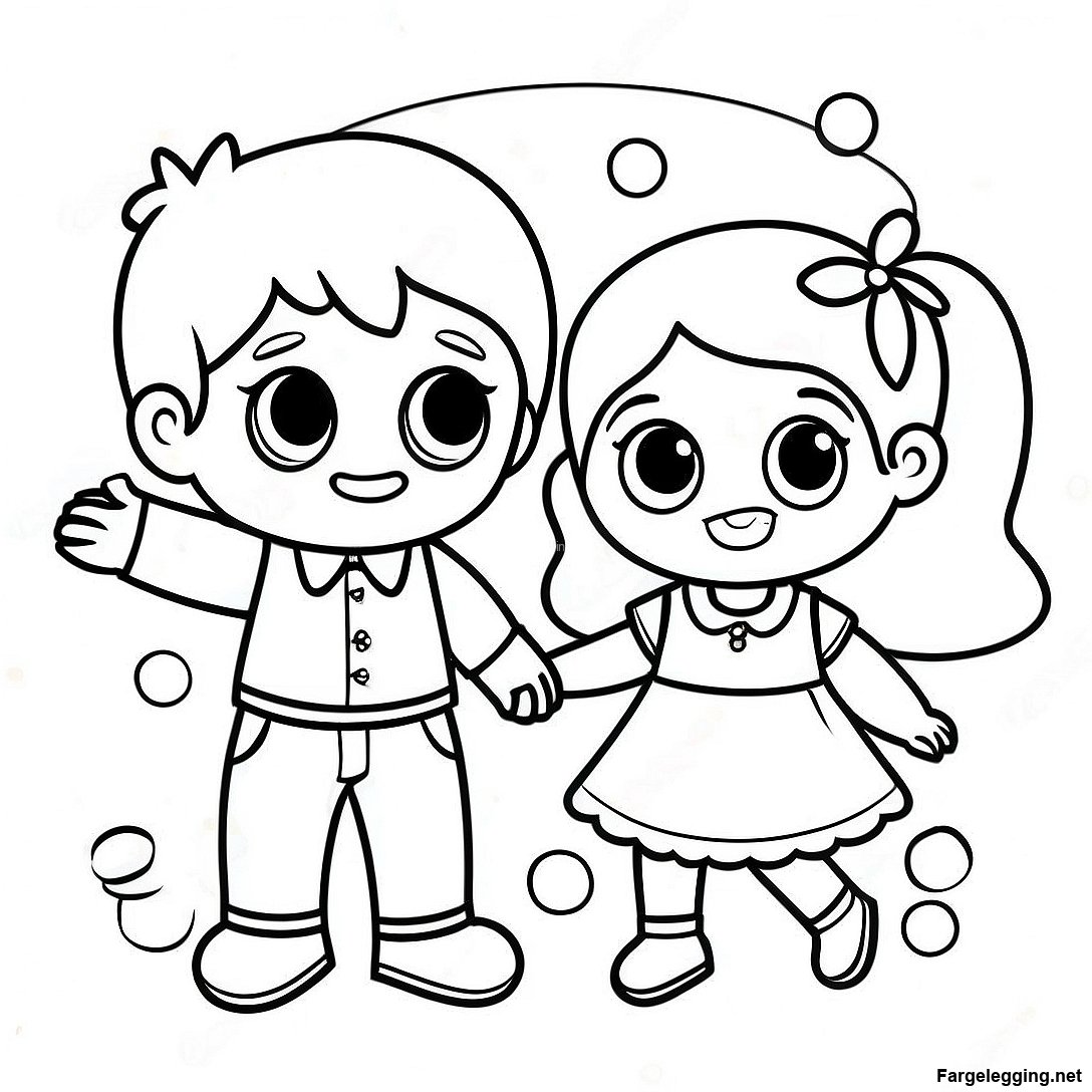 Last ned utskrivbart PDF av Lekende Gutt Og Jente Fargeleggingsside