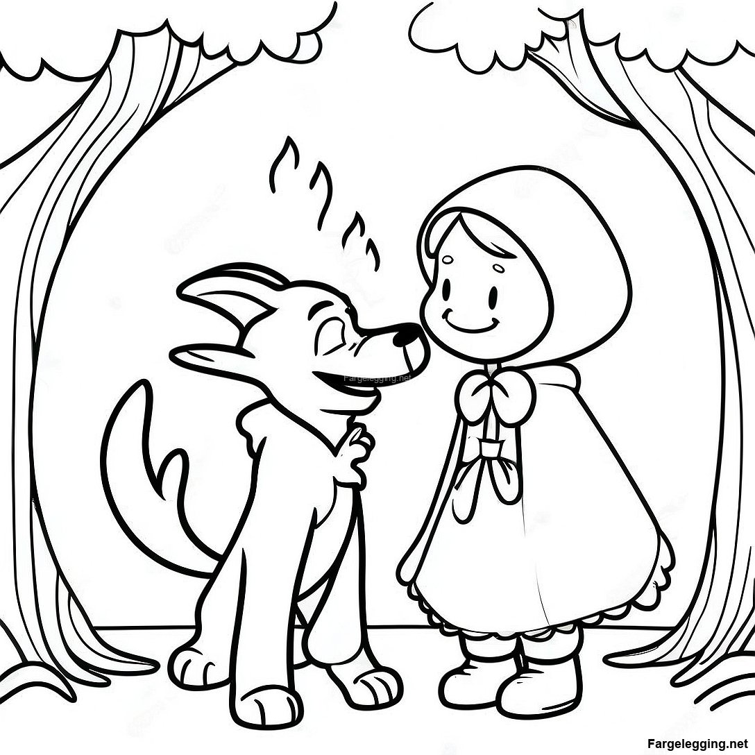 Last ned utskrivbart PDF av Lille Rødhette Møter Ulven Fargeleggingsside