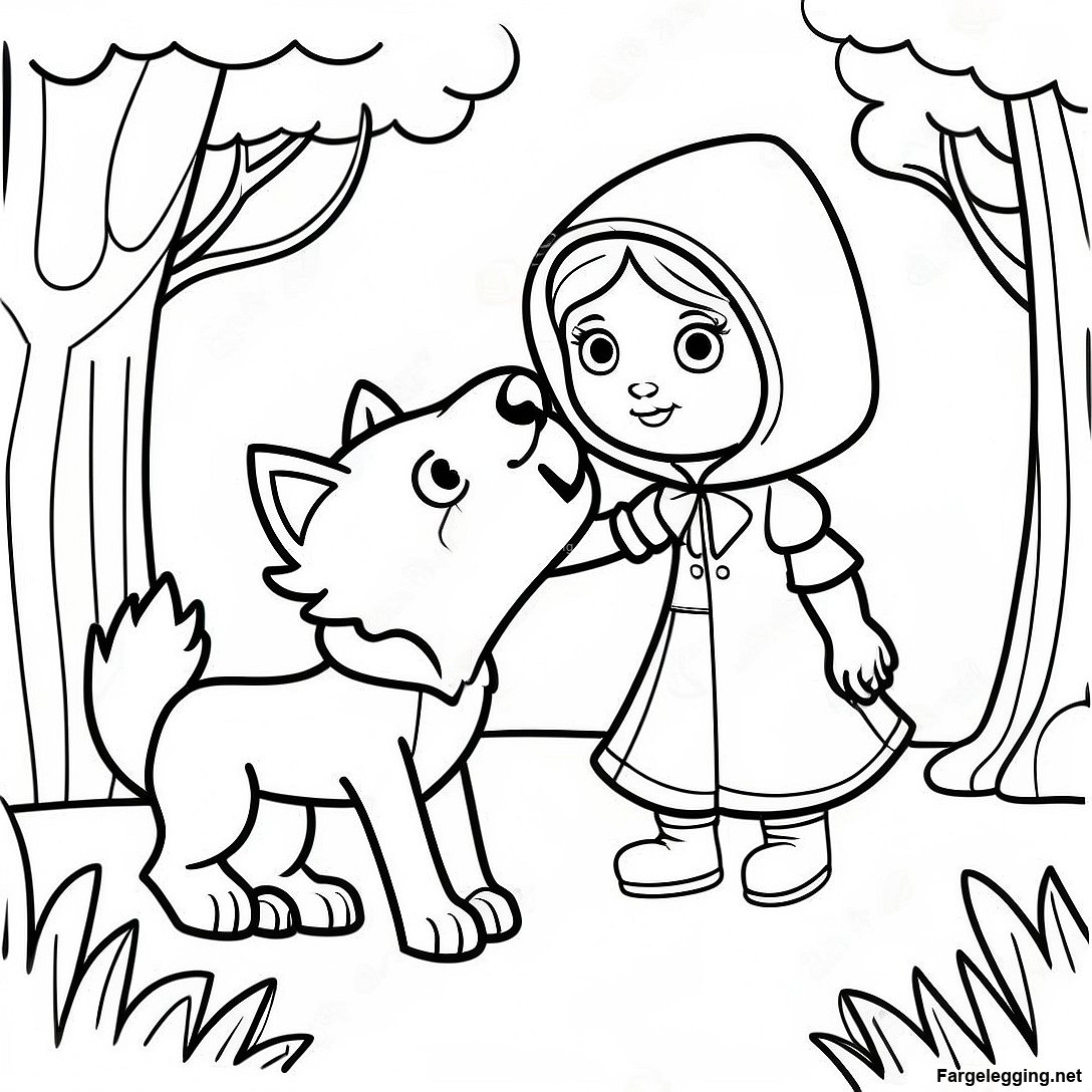 Last ned utskrivbart PDF av Lille Rødhette Møter Ulven Fargeleggingsside