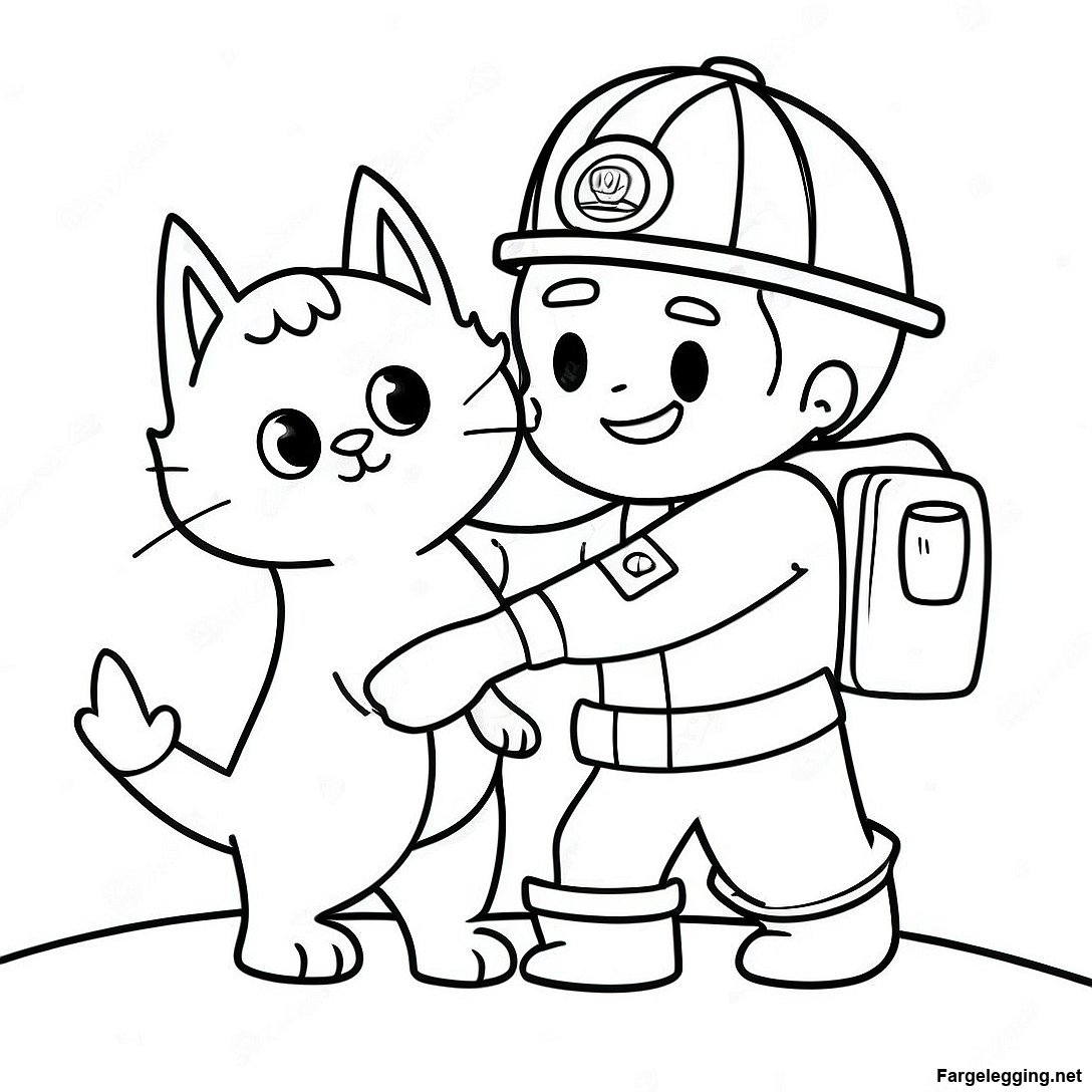 Modig Brannmann Som Redder En Katt Fargeleggingsside