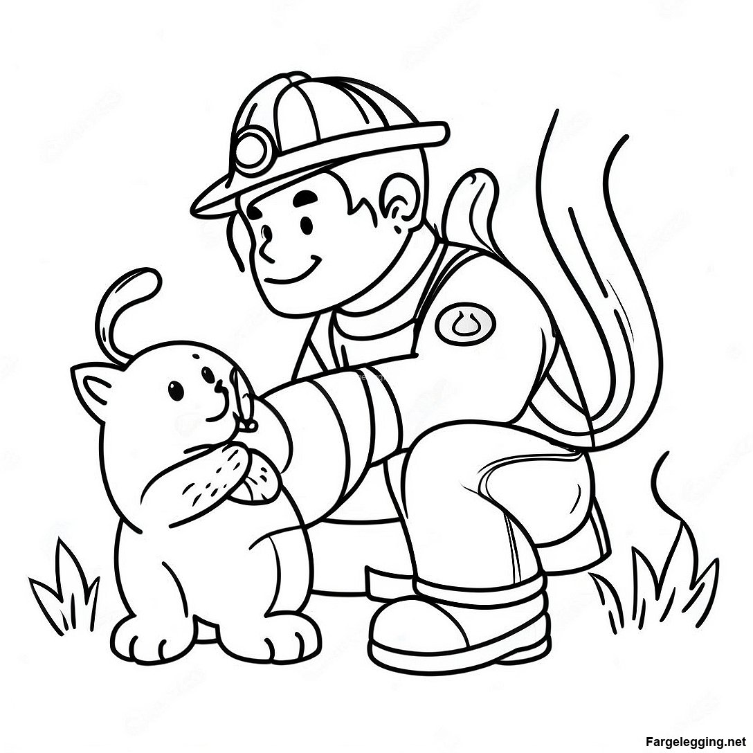 Modig Brannmann Som Redder En Katt Fargeleggingsside 30298 6595
