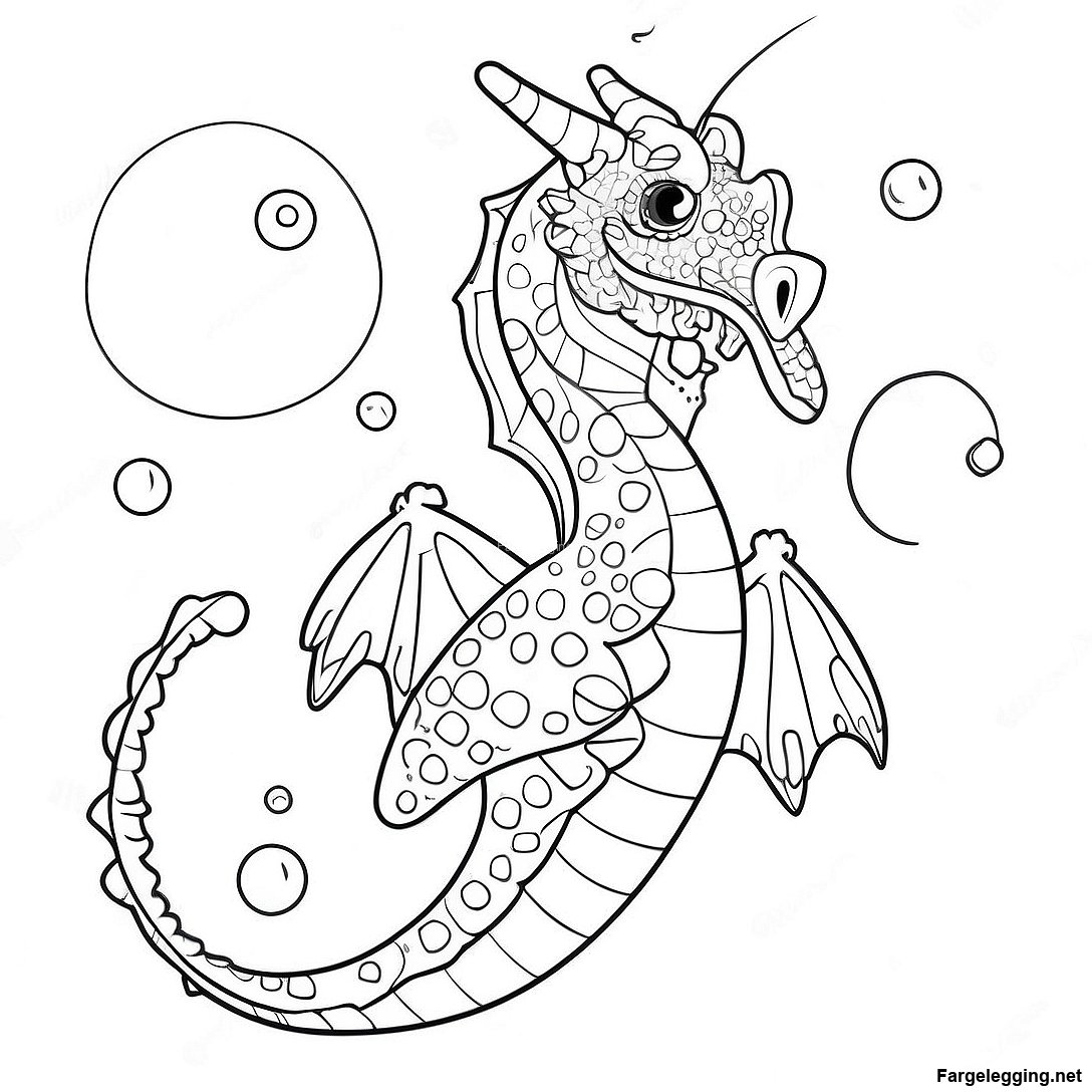 Last ned utskrivbart PDF av Mystisk Havdrage Med Bobler Fargeleggingsside