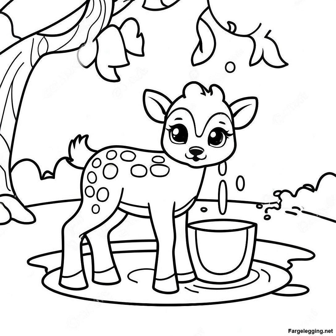Last ned utskrivbart PDF av Nydelig Baby Hjort Som Drikker Vann Fargeleggingsside