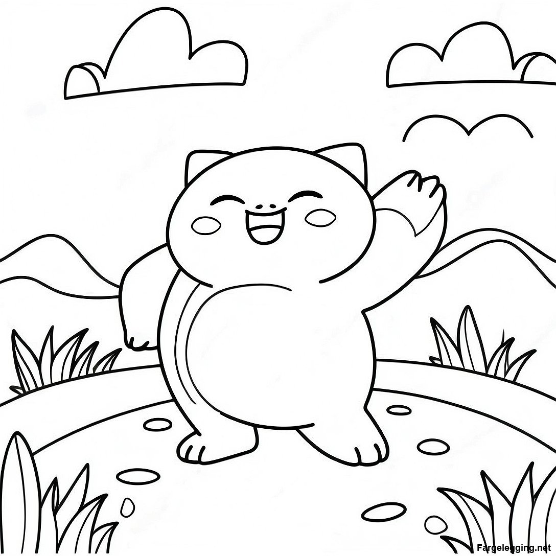 Snorlax I Et Drømmende Landskap Fargeleggingsside