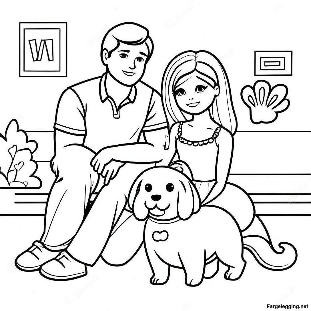 Sot Barbie Og Ken Med Kjaeledyr Fargeleggingsside