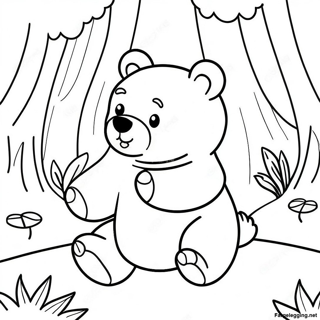 Søt Brun Bjørn Som Leker I Skogen Fargeleggingsside