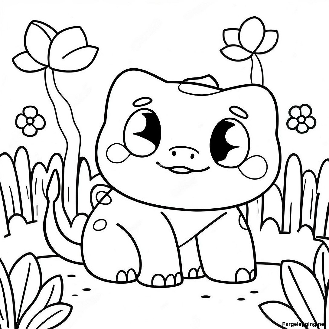 Sot Bulbasaur I En Blomsterhage Fargeleggingsside