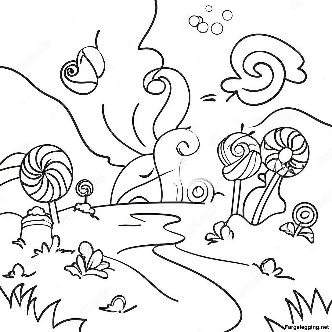 Last ned utskrivbart PDF av Søt Candyland Landskap Fargeleggingsside