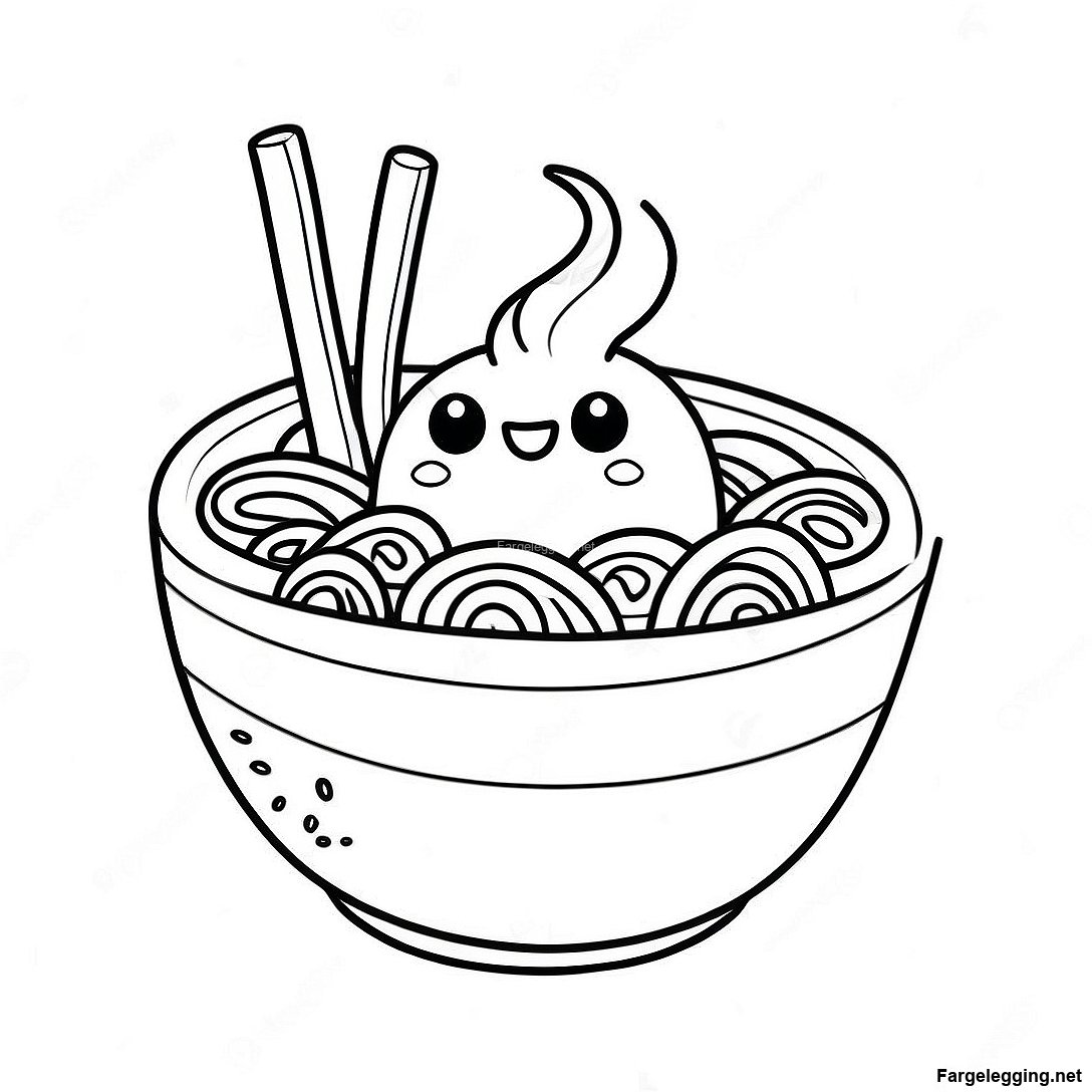 Last ned utskrivbart PDF av Søt Ramen Nudler Fargeleggingsside