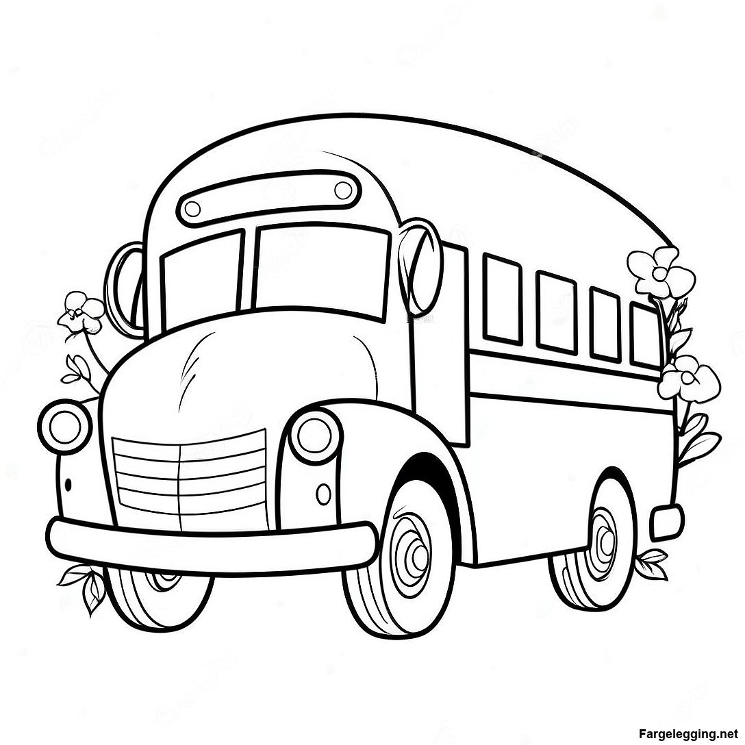 Last ned utskrivbart PDF av Søt Skolebuss Med Blomster Fargeleggingsside