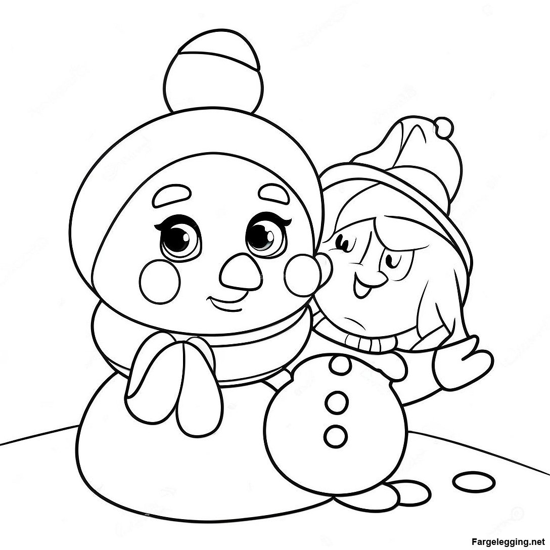 Søt Snøprinsesse Med Vennlig Snømann Fargeleggingsside