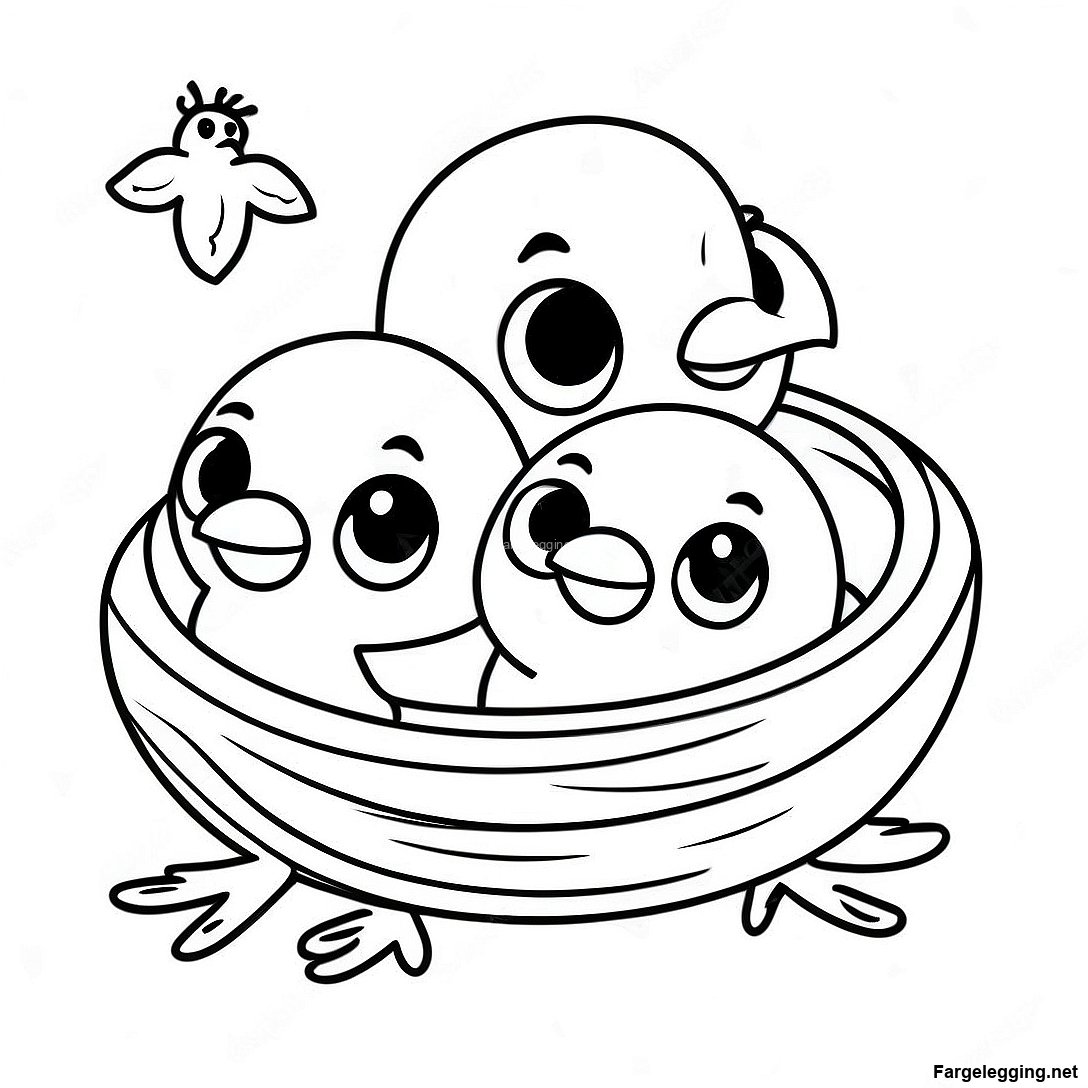 Søte Baby-Ravner I Rede Fargeleggingsside