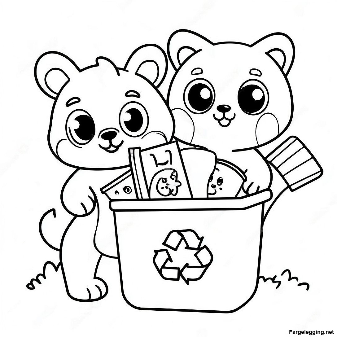 Søte Dyr Resirkulering Fargeleggingsside