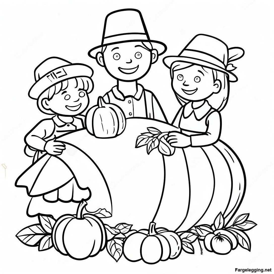 Takkefest Pilgrim Familie Fargeleggingsside