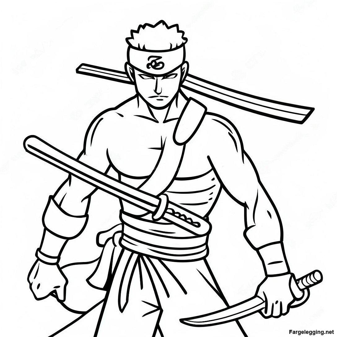 Last ned utskrivbart PDF av Zoro Med Sverd Fargeleggingsside